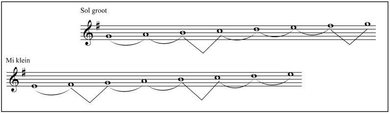 Kleine tertstoonladder (ttl): de afstand tussen toontrap I (tonica) en toontrap III (mediant) is een kleine terts.